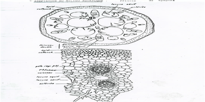 - épiderme à cuticule fine ou absente ( l’absorption de l’eau se fait par la surface immergée)